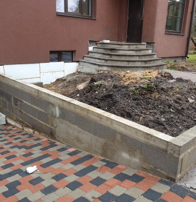 Äärekivi madalamale ja kaldpind ratastooliga sissepääsuks parkimiskohalt