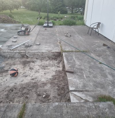Välistrepi valu koos aluse tegemisega ja terrassi postide puurimise ja valuga