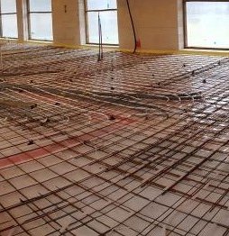 Betooni valu, lihvimineja põrandakütte toru paigaldus