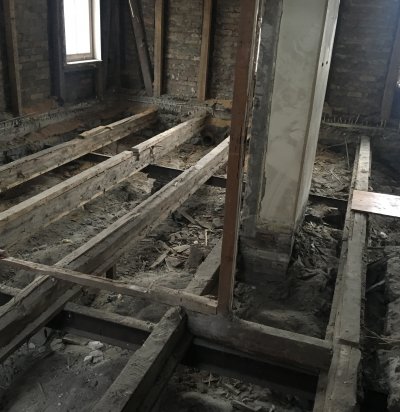 Raudbetoonpõranda valamine vanadele puittaladele.