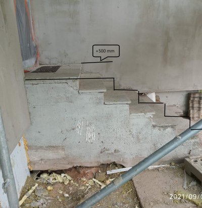 Vaja üle valada 2 treppi, kaldega väljapoole.