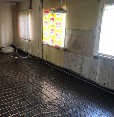 Põranda soojustamine, veetorude paigaldus, plaatimine