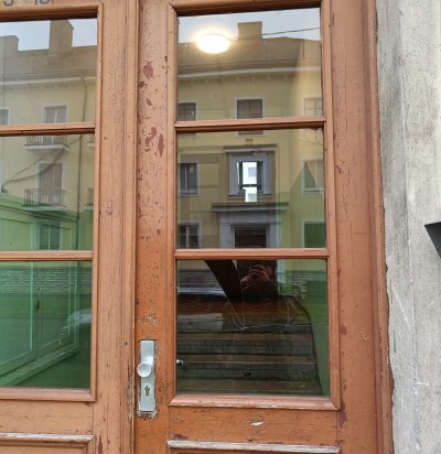 Klaasi vahetamine trepikoja välisuksel.