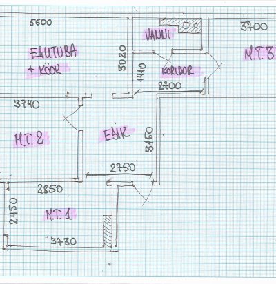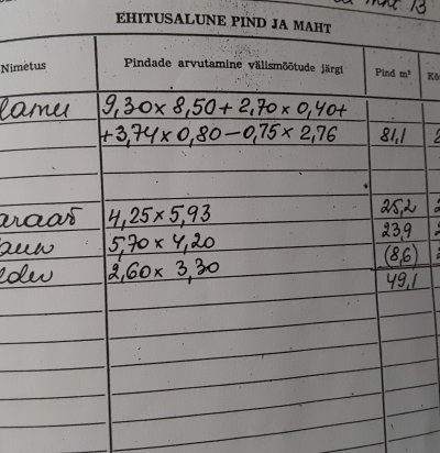 Andmete esitamise teatis. 3-toaline 4 -toaliseks registreerimine. Köök tõstetud ümber