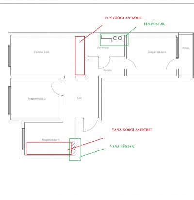 Andmete esitamise teatis. 3-toaline 4 -toaliseks registreerimine. Köök tõstetud ümber