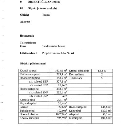 Arhitektuurne projekt koos eriosadega (vesi-kanal, küte, elekter, vent)