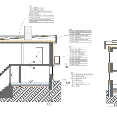 Arhitektuurne projekt koos eriosadega (vesi-kanal, küte, elekter, vent)