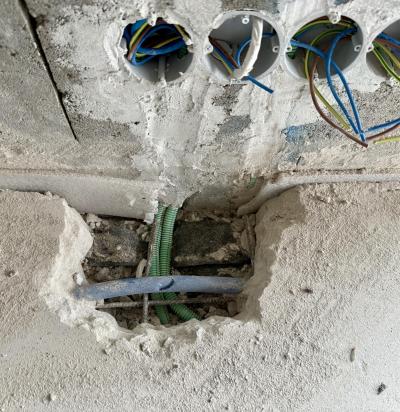 Ühes toas betoonseina freesimine ja täiendavate pistikute jaoks elektri vedamine