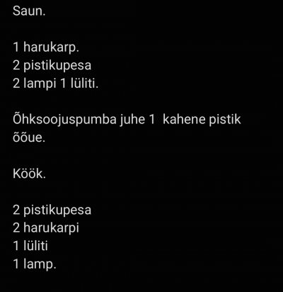 Elumaja koduautomaatika jõu ja valguspaigaldus installatsioonitööd koos materjaliga