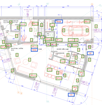 Elektri teostusjoonis kahele sama maja korterile DWG