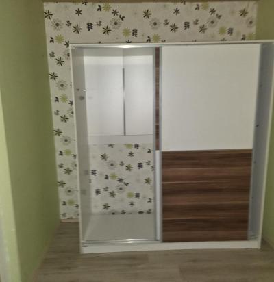 Korteris duŝinurga, integreeritud külmkapi ja garderoobiukse vahetused; seinte värvimine