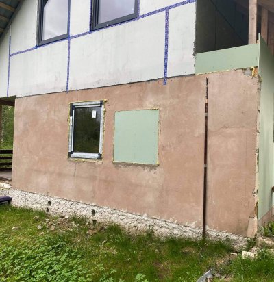 Eramaja puitfassaadi värvimine, sokliosa katmine Raketerm kiviplaadiga (ilma soojustuseta)