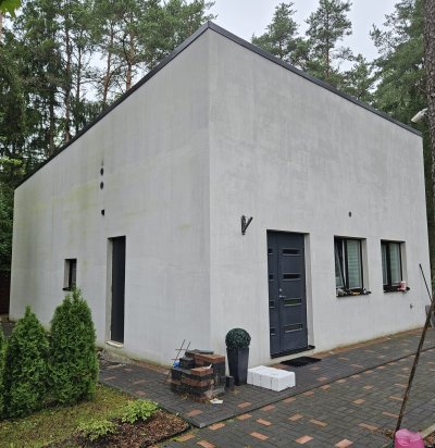 Maja fassaadi krohvimine ja akende palede tegemine väljast.