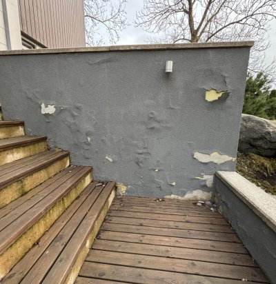Välis trepipiirde betoonmütside paigaldus ja piirete krohvimine