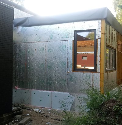 Püstpalkmaja väljast soojustamine ja fasaadi tegemine.