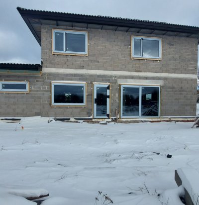 Maja fassaadi ehitus, vundamendi ja katuse soojustamine, plekk-katuse paigaldus