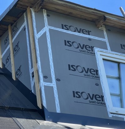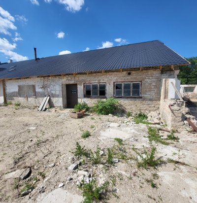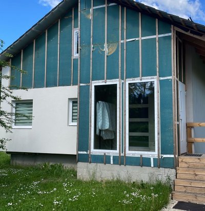 Vana elumaja väljast soojustamine ja uue laudise paigaldamine.