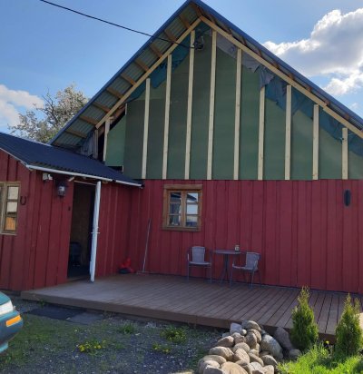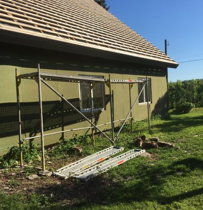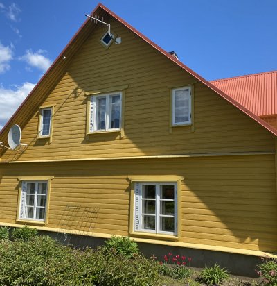 Eramaja puitfassaadi värvimine, sokliosa katmine Raketerm kiviplaadiga (ilma soojustuseta)