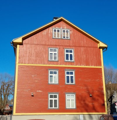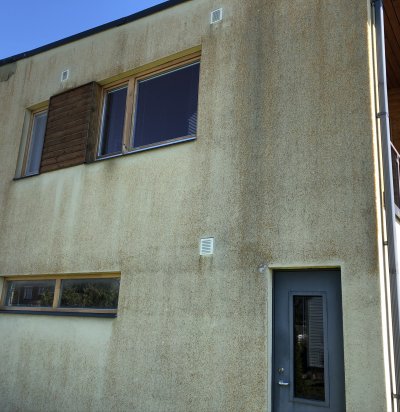 Soodapritsiga puitfassaadi puhastamine vanast värvist