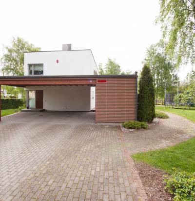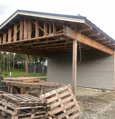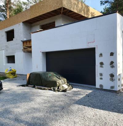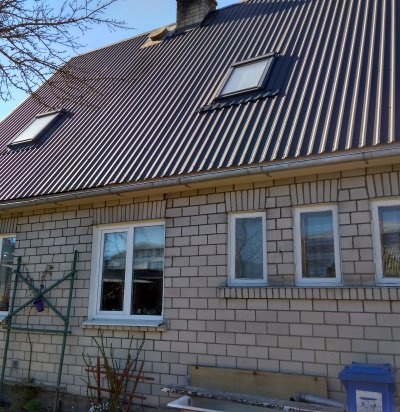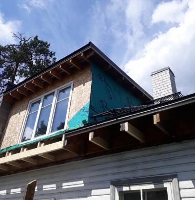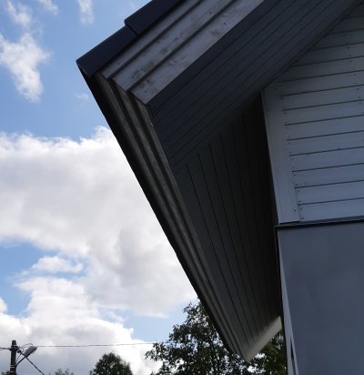 Garaazi välisvoodri paigalduse lõpetamine + tuulekastid, räästaaluse lõpetamine ja vihmaveesüsteemi paigaldus