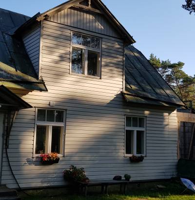 Maja fassaadi laudiseosa korrastus ja värvimine.