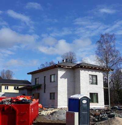 Kahekorde maja armeerimine ja krohvimine väljast.