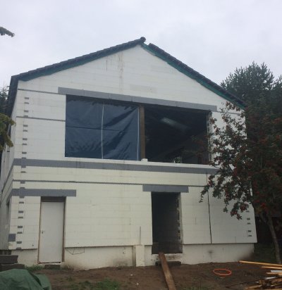 Valmiva elumaja välisseinte penoga soojustamine ja krohvimine