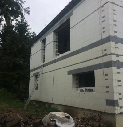 Valmiva elumaja välisseinte penoga soojustamine ja krohvimine