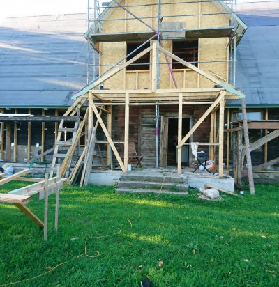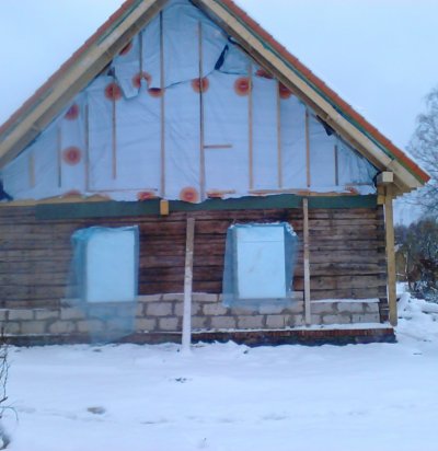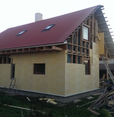 Maja otsaseinte soojutuskarkassi ehitamine ja katmine laudisega.