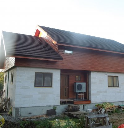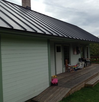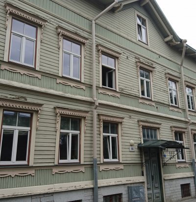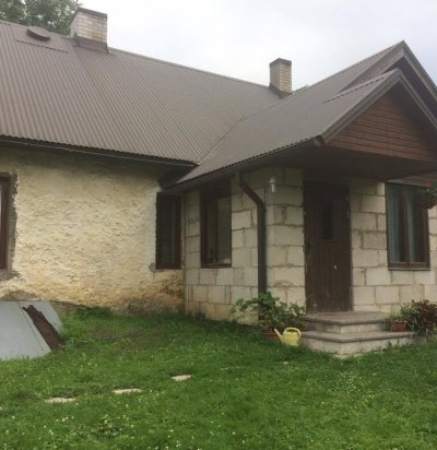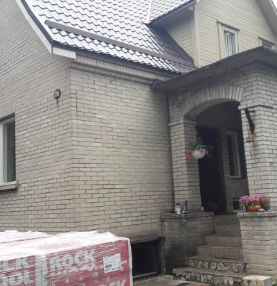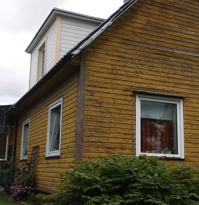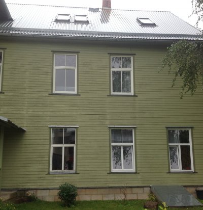 Kahekordse puitmaja välisvoodri mõnede laudade vahetus, katuse harjalaua paigaldus Valgamaal Harglas