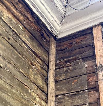 Laudfassaadi vanast värvist puhastus ja linaõlivärviga ülevärvimine.