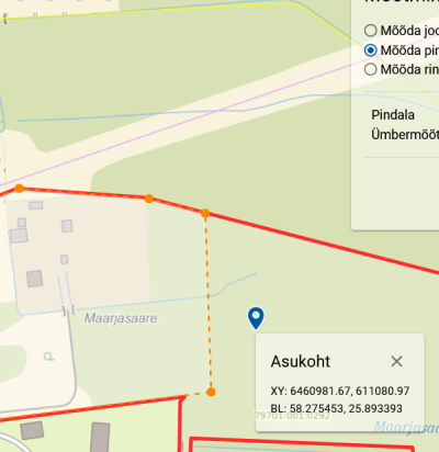 Maa mõõtmine ja katastriüksuse jagamine kaheks koos dokumentatsiooniga