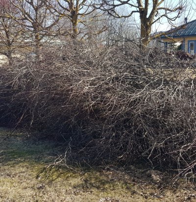 Ülekasvanud sireliheki lõikamine koos okste äraviimisega