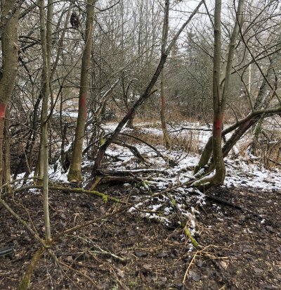 Suure , kõrge männi tormimurtud okste eemaldamine