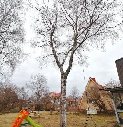 Puude mahavõtmine kinnistult, okste utiliseerimine, tüvede tükeldamine.