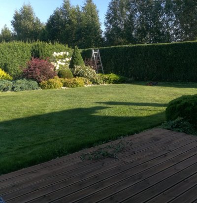 Väikese aia kujunduslahendus, teostus, muruparandus