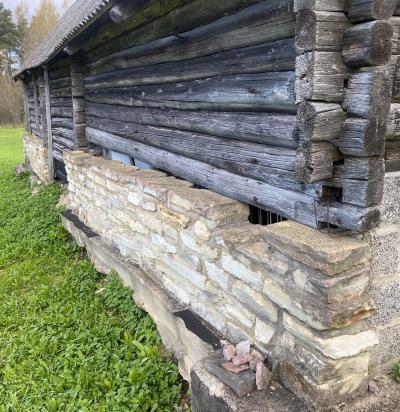 Palkmaja palkide vahetus, talveaiale postvundamendi valamine