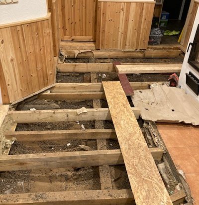 Vana suvila esiku ja elutoa põranda betooni valamine koos põrandakütte paigaldamisega