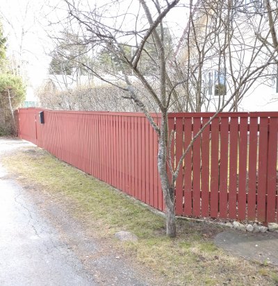 Tänavaäärne puitlippidega piirdeaed koos auto- ja jalgväravaga (21,5 m)