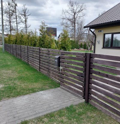 Tänavaäärne puitlippidega piirdeaed koos auto- ja jalgväravaga (21,5 m)