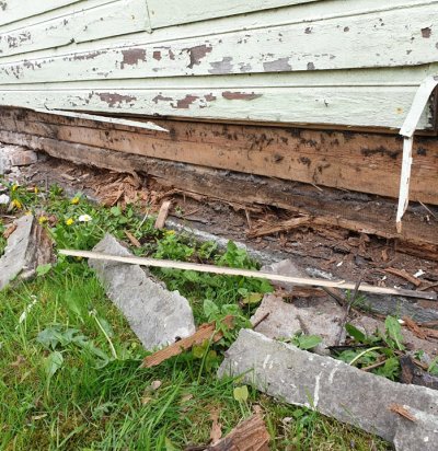 Maja 3 seina alumiste pehkinud palkide eemaldamine ja asendamine fibo plokiga