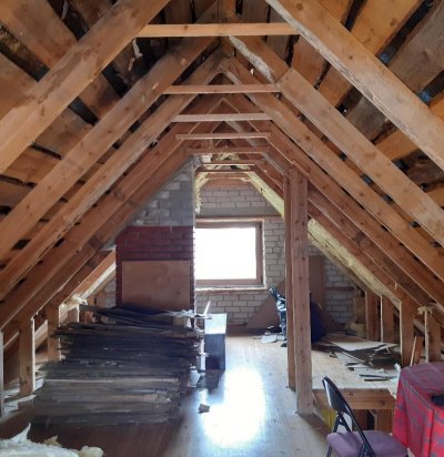 Katusel eterniidi vahetus koos harja-,korstna- ja ääre plekkidega,katuse pind ca 240m2 kidega.Vihmavee süsteem ja tuulekastid jäävad vanad