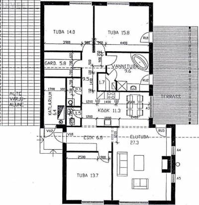 Puitmaja fassaad, tuulekastid ja vihmaveesüsteem.