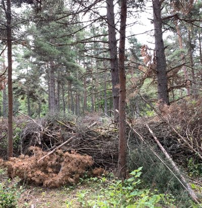 Heki lõikus ja kolme mädanud puutuve koristamine ning utiliseerimine