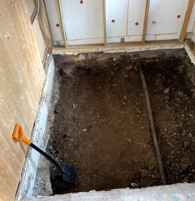 Saunapõranda põrandakütte paigaldus ja plaatimistöö.