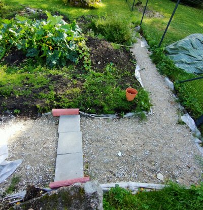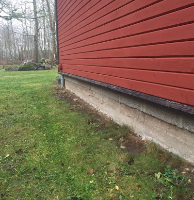 Murutee äärekivi paigaldus sokli ja muru vahele. Eramaja, Sakus.