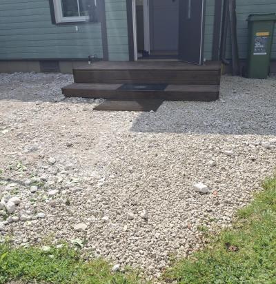 Eramaja tänvakivi ehk parketi pagaldus.vana kivi ülesse, uus sängitus, tihendamine ja kivi tagasi.