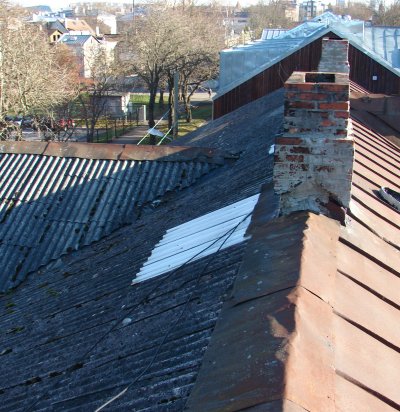 Väga kehvas seisus ca 400m2 savikivikatuse katmine kile või ms.