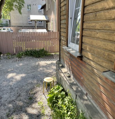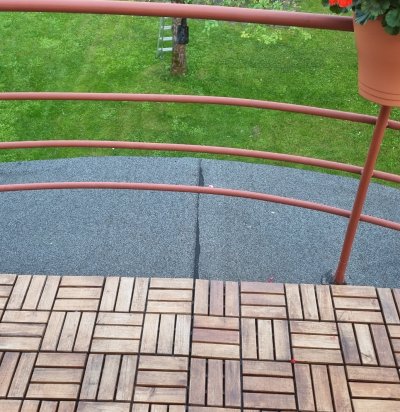 Paariline (eestööline) koos oma tööriistadega eramaja rõdu lamekatuse renoveerimisele