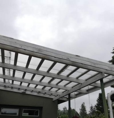 Uue katuse ehitamine , sarikate ja seinakarkassi paigaldamine.